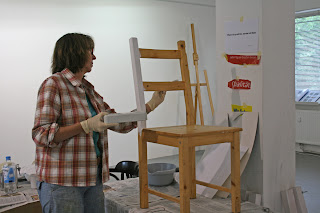 aus acrylbemaltem Holz, Teebeuteln und Kissen